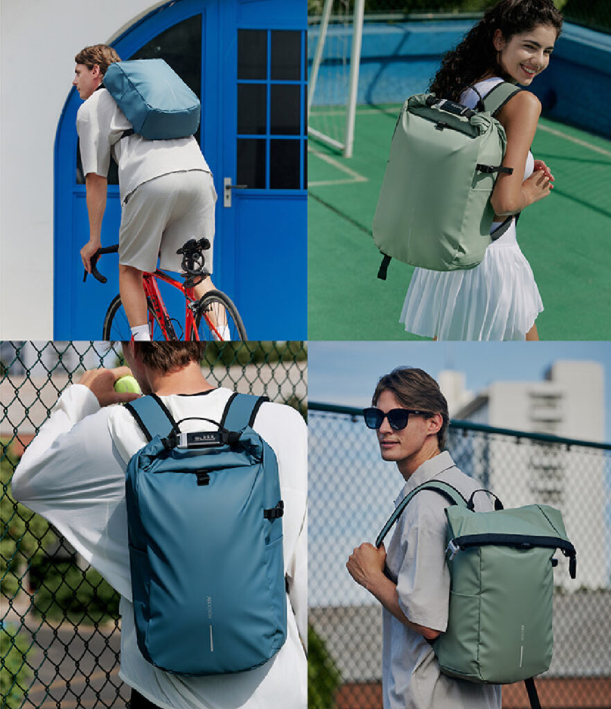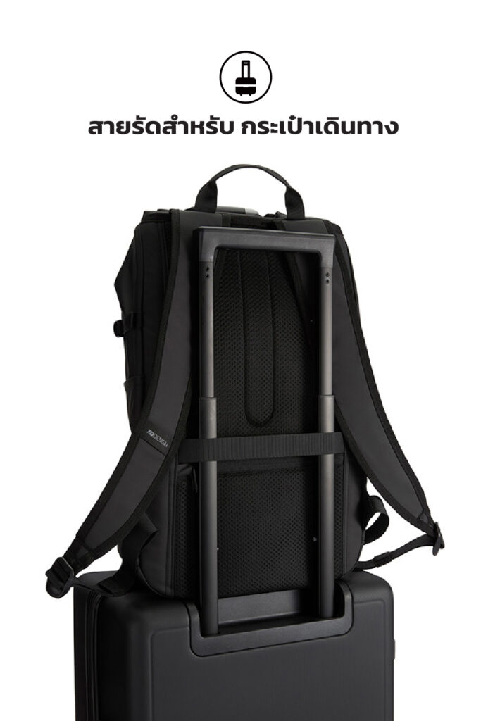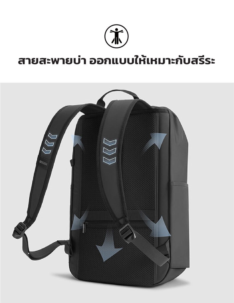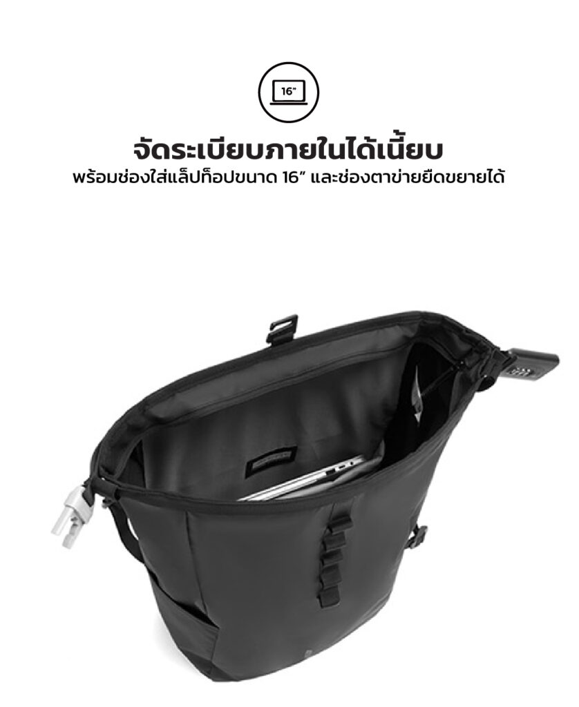 กระเป๋าเป้นิรภัยสะท้อนน้ำรุ่นล่าสุดฺ ตอบโจทย์ทุกการเดินทาง พร้อมเท่ไปกับคุณอย่างปลอดภัย ไร้กังวล และสะดวกสบายกว่า เพียงม้วนปากกระเป๋าด้านบนแล้วเสริมความปลอดภัยด้วยตัวล็อคแบบรหัส และยังสามารถใช้คล้องล็อคกับวัตถุที่อยู่กับที่ เพื่อล็อคตัวกระเป๋าได้อีกด้วย ตัวกระเป๋าภายนอกมีช่องลับอยู่ด้านหลัง และช่องใส่ขวดน้ำอยู่ด้านข้าง ภายในมีช่องบุนวมสำหรับใส่แล็ปท็อปขนาด 16 นิ้ว และช่องตาข่ายสำหรับใส่ของใช้จำเป็นอื่น ๆ ออกแบบและตัดเย็บอย่างพิถีพิถันจาก PU คุณภาพ กันน้ำ และให้ความทนทานในการใช้งาน ซับในผลิตจากผ้าโพลีเอสเตอร์รีไซเคิลแท้ Aware ™