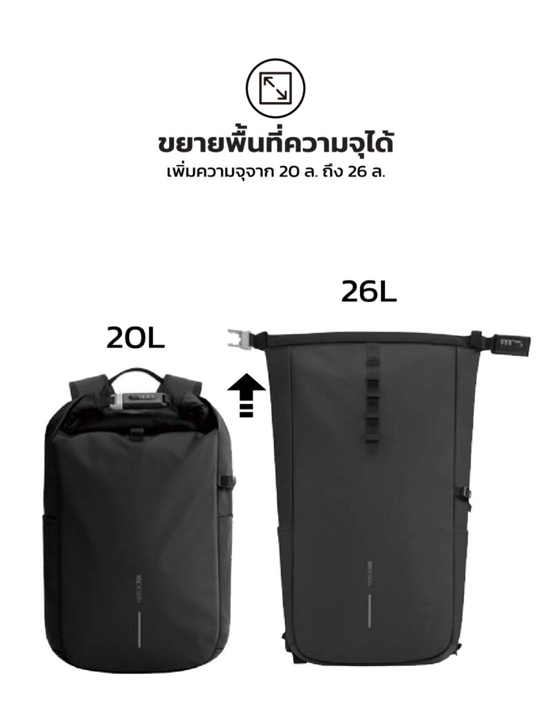 | ความจุ | 20-26 ลิตร ( ม้วนปิด/เปิดออก) |